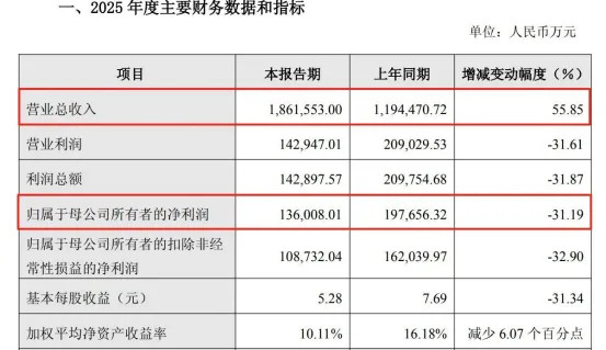 2月27日,北京石头世纪科技股份有限公司发布2025年度事迹快报。事迹快报骄矜,公司营业收入186.16亿元,同比增长55.85%,创下历史新高;归母净利润13.60亿元,同比暴跌31.19%。