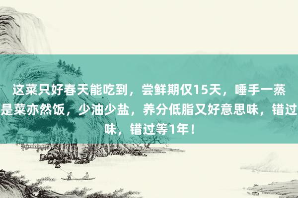 这菜只好春天能吃到,尝鲜期仅15天,唾手一蒸一拌,是菜亦然饭,少油少盐,养分低脂又好意思味,错过等1年!