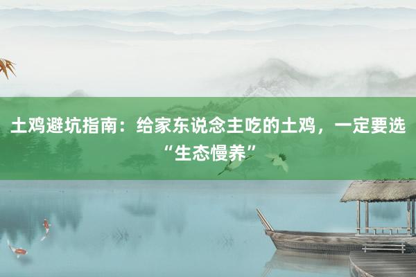 土鸡避坑指南:给家东说念主吃的土鸡,一定要选“生态慢养”